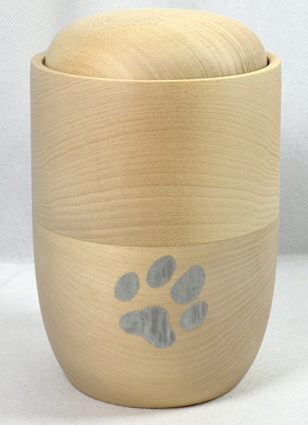Diese Tierurne ist mit einer farbigen Tatze lackiert und in Deutschland handgefertigt. Jede einzelne Urne ist durch die unterschiedlichen Maserungen ein Unikat. Teilweise enthält die Urne einen wunderschönen Asteinschluss oder Verwachsungen im Holz. Diese natürliche Tierurne eignet sich zur Erdbestattung, da sie biologisch abbaubar ist. Aber auch im Innenbereich ist sie eine Augenweide.Die Farbe der Tatze kann aus 4 Farben gewählt werden.