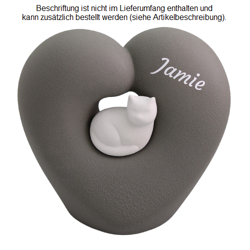 Umarmungen geben unserem Herzen nach einem traurigen Abschied wieder Kraft.Die Tierurne Umarmung hat die Form eines Herzens und wird aus sehr beständigem Feinsteinzeug von erfahrenen Handwerksbetrieben hergestellt. In der Mitte des Herzens befindet sich entweder eine kleine, weiße oder graue Katze, die liebevoll umarmt wird.