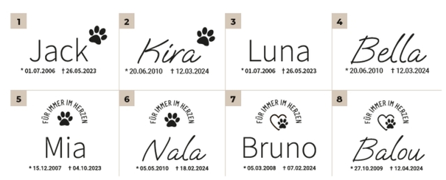 Die Sirius bietet zudem die Möglichkeit einer individuellen Personalisierung, etwa mit Namen, Datum oder einem liebevollen Symbol. Auf diese Weise wird jede Urne zu einem einzigartigen Andenken, das die besondere Beziehung zwischen Mensch und Tier auf einfühlsame Weise bewahrt.