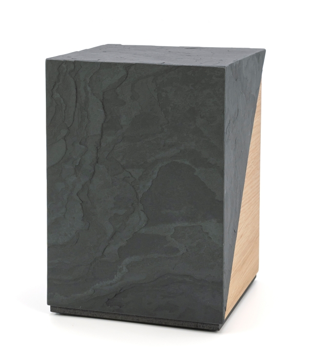 Naturbedingte Unterschiede in Holzstruktur, Farbton des Schiefers und Gravur machen jede Urne zu einem Unikat.