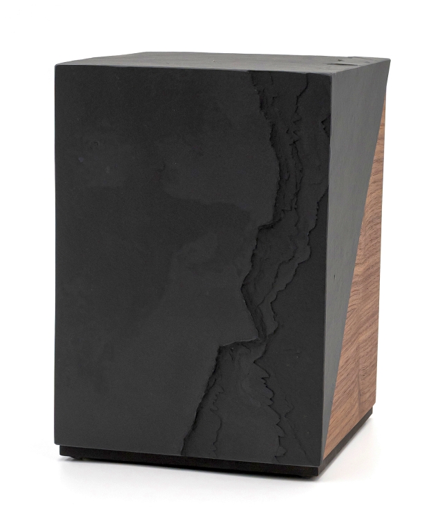 Holztierurne Sirius mit Eiche- oder Nussbaumfurnier und Schiefer- oder Buntschieferfurnier in verschiedenen Größen