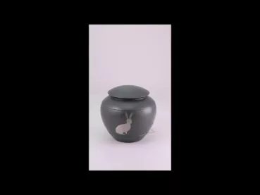 Die hochwertig verarbeitete Kaninchenurne Metall wird von erfahrenen Handwerkern mit Sorgfalt und Liebe und einem speziellen Blick für Details hergestellt. 4 verschiedene und perfekt ausgearbeitete Kaninchen-Silhouetten laufen um die Urne.Die Schrauböffnung befindet sich oben.