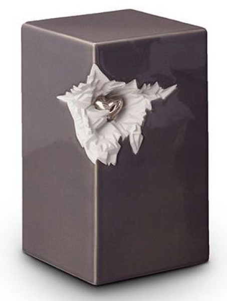 Keramikurne Blockform dunkelgrau mit silberfarbenem Herz