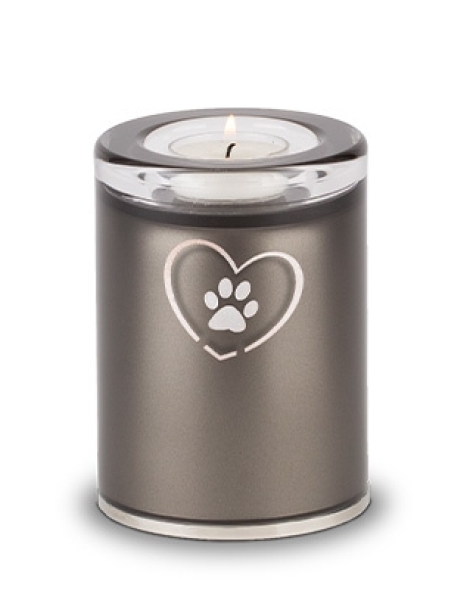 Tierurne aus Glas, Herz-Pfote, Gedenklicht, versch. Farben und Größen