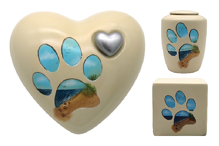 Tierurne Pfötchenparadies in Herzform, klassischer Form, oder Würfelurne in verschiedenen Größen
