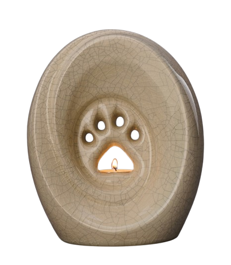 Die einzigartige Tierurne Tatze mit Lichteinsatz bietet nicht nur einen würdevollen Ort für die Asche Ihres treuen Begleiters, sondern auch eine warme und beruhigende Atmosphäre durch das integrierte Gedenklicht. Das einzigartige Design dieser Keramikurne vereint gekonnt Funktionalität und Emotion.Diese Keramikurne präsentiert sich mit einem gealterten Look und charakteristischem Knistern auf der Glasur und dient nicht nur als stilvolle Erinnerung, sondern auch als wunderschönes Denkmal für Ihren vierbeinigen Freund.