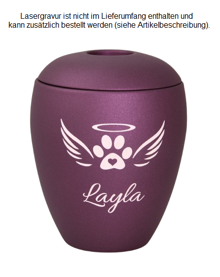 - Lasergravur (erscheint auf Urne weiß/cremefarben)