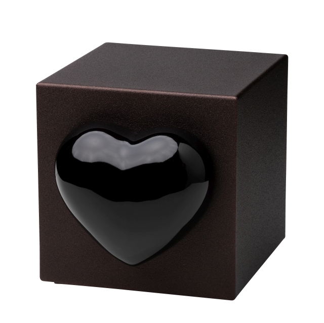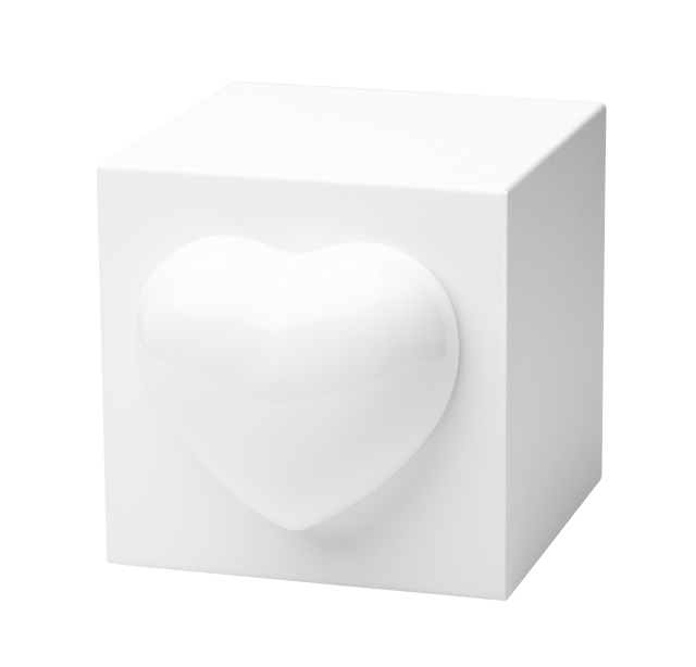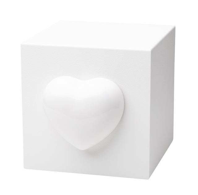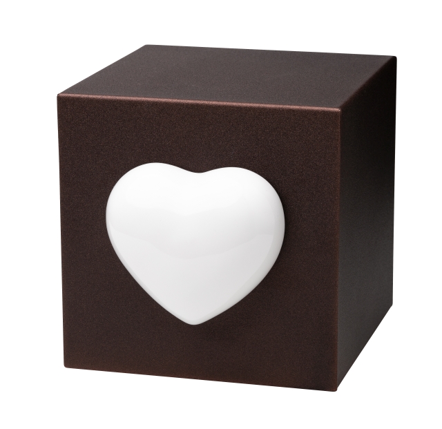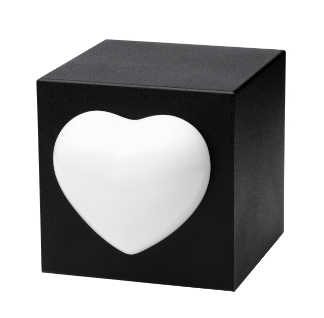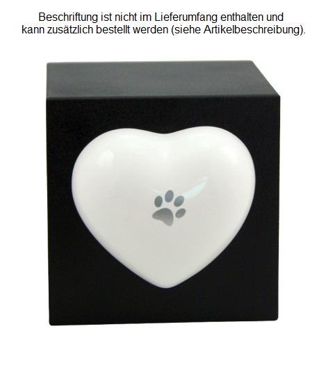 Tierurne Würfel mit Herz, Metallurne, Keramikherz, versch. Farben und Größen