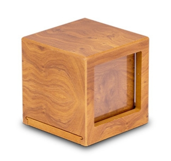 Tierurne Fotowürfel hellbraun Aschebox geschlossen