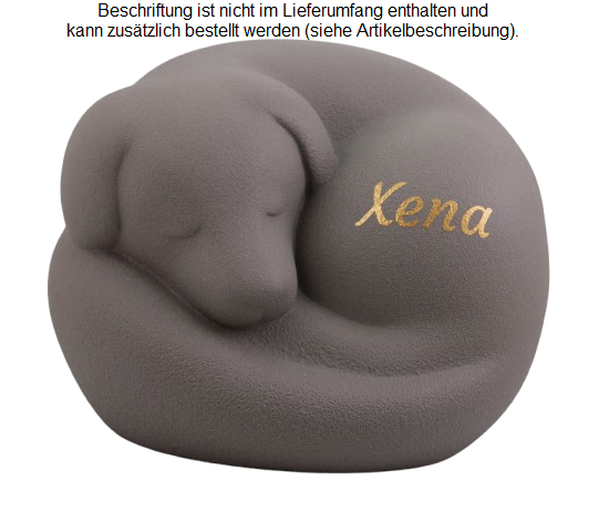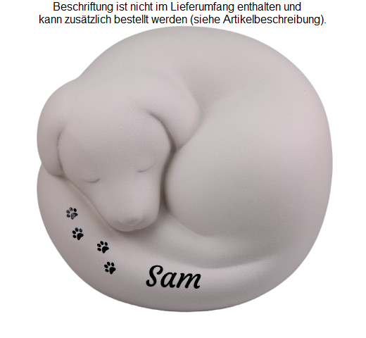 Dank ihrer Robustheit und Langlebigkeit wird diese Tierurne zu einem dauerhaften Symbol für die Liebe und die unvergesslichen Momente, die Sie mit Ihrem Hund geteilt haben. Schaffen Sie einen würdevollen Ort der Erinnerung – mit unserer stilvollen Tierurne in Hundeform.