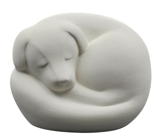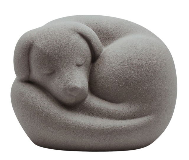 Verabschieden Sie sich liebevoll von Ihren geliebten Hund und bewahren Sie Ihre Erinnerung auf besondere Weise. Unsere außergewöhnliche Tierurne in Form eines ruhenden Hundes ist aus hochwertigem Feinsteinzeug gefertigt und in elegantem Grau oder klassischem Weiß erhältlich.